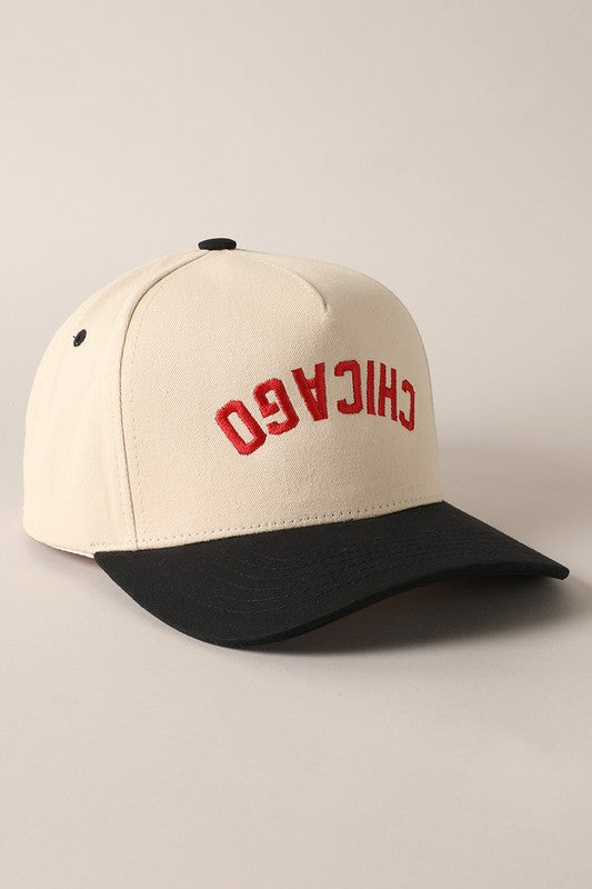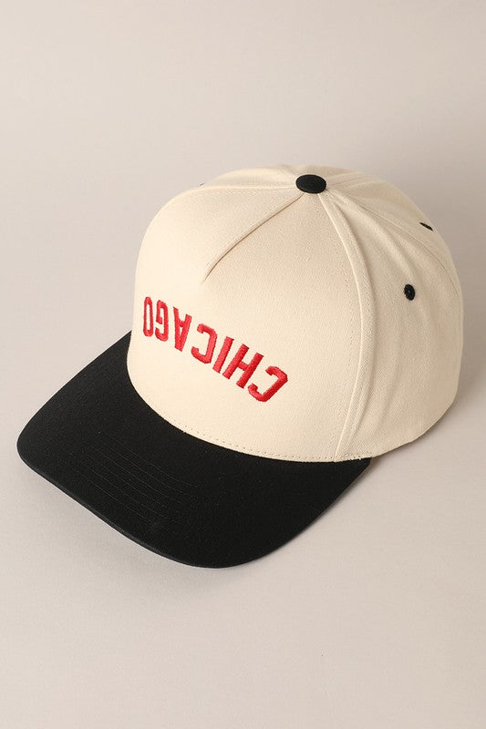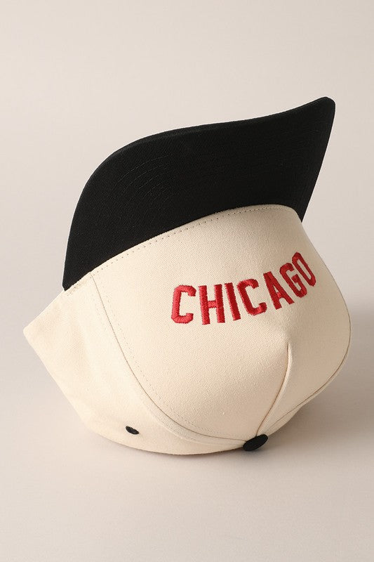 • Details: Upside-down “CHICAGO” embroidery, 5-panel design, snap closure