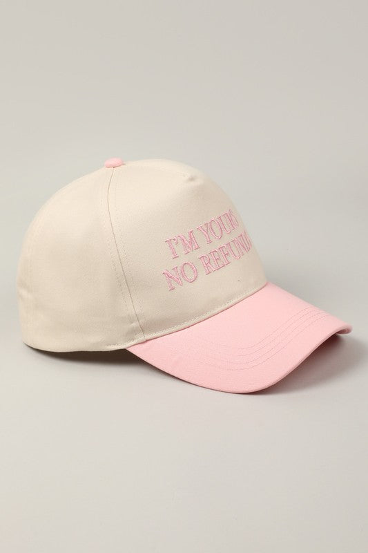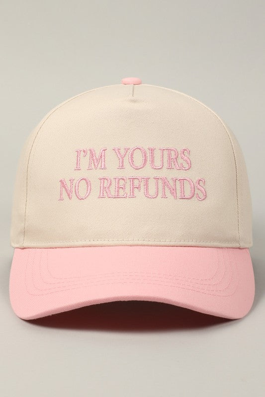 “I’m Yours, No Refunds” Embroidered Two-Tone Cap